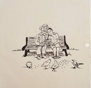 It’s interesting to me to look back at things I draw and notice motifs and running themes. At the moment I’ve noticed I’ve drawn a lot of birds, which is probably very telling in a time when we don’t have a lot freedom and are trapped inside, I’m drawing creatures that can fly and can go wherever they wish. I also notice I draw positive male role models and love stories. That’ll be the romantic in me.